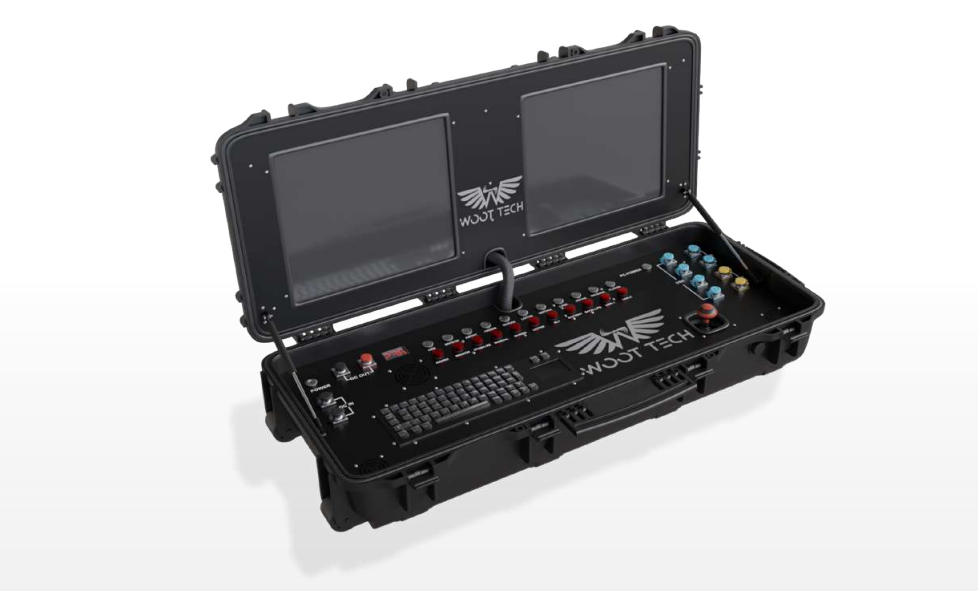 GCS Rocksteady 2.5, a rugged (IP67) ground control station, is tailored for autonomous vehicle management with an integrated data transmission link. Featuring dual screens for simultaneous mission and payload control, it offers dedicated buttons for mission modes, payload control, and arming/disarming.